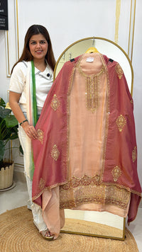 Ultra Luxury Soft Shimmer Tissue Suit with Premium All-Over Work & Contrast Dupatta GF 471 - Pink