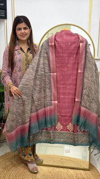 Unique Smart Pure Tussar Silk Shirt Material with Premium Peeta Work & Digital Printed Tussar Dupatta GF 436 - Pink