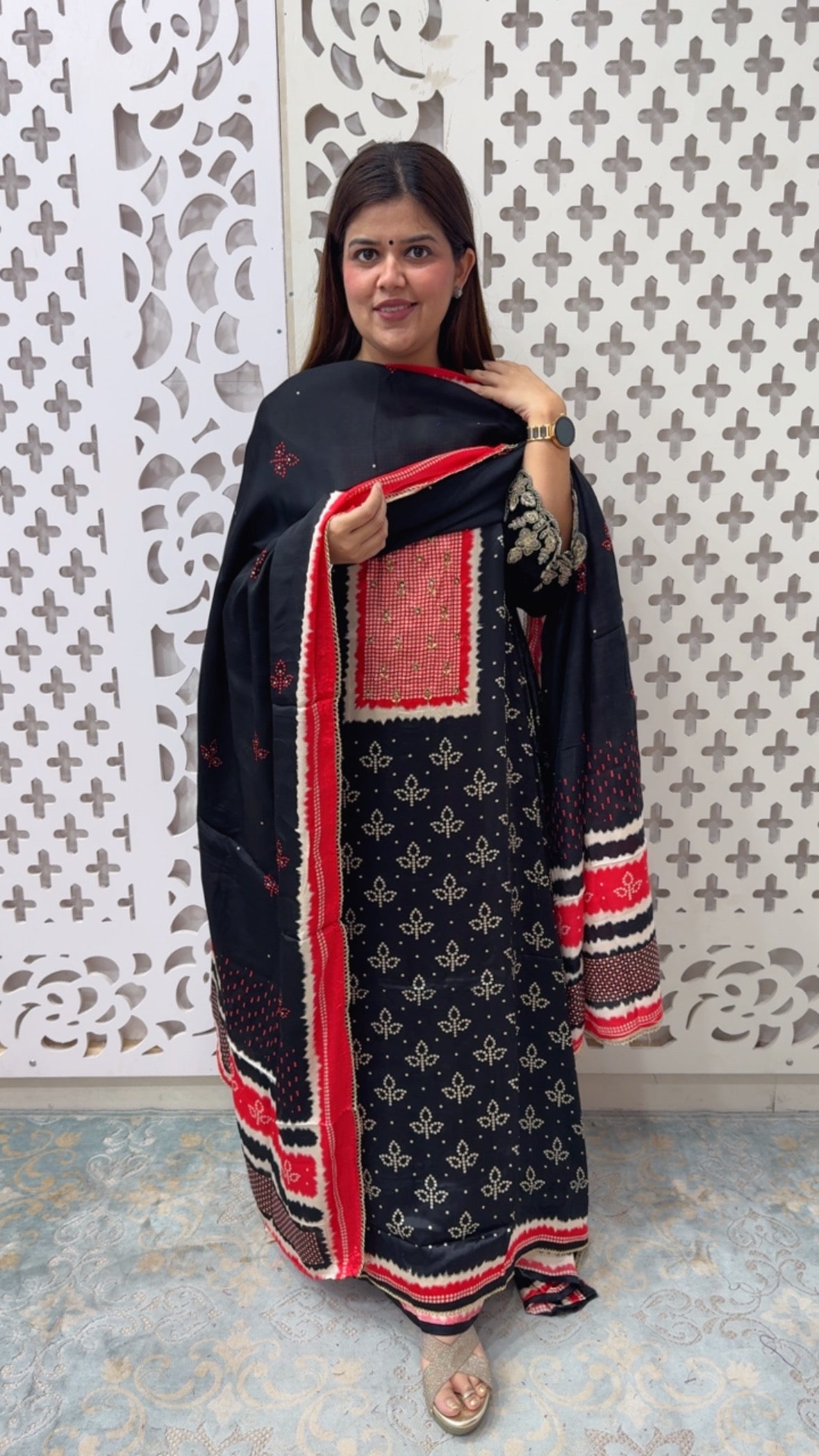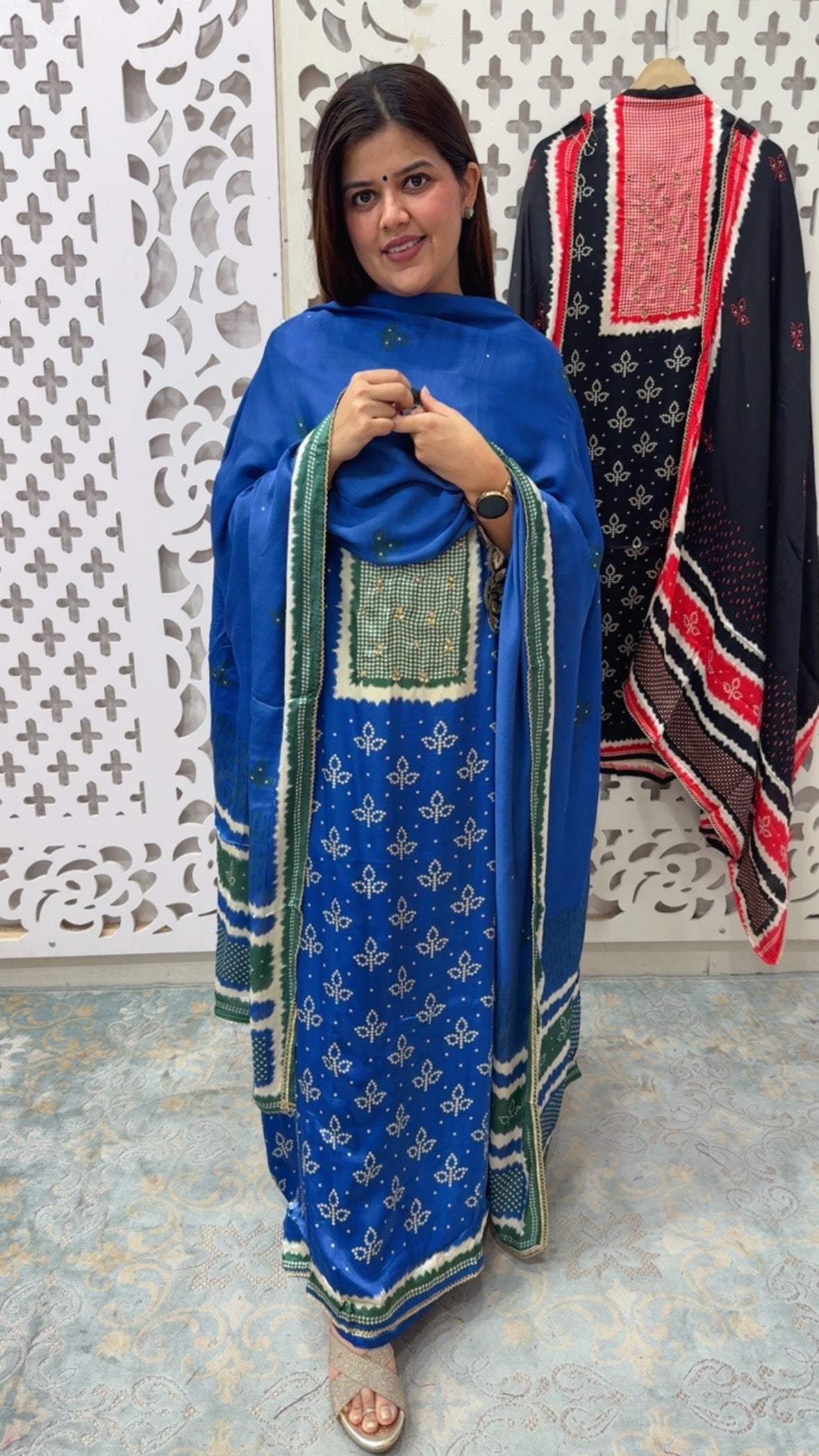 Experience pure elegance with our unique printed Gajji Silk shirt, paired with a stylish matching Gajji Silk dupatta. Known for its rich texture, glossy finish, and luxurious drape, this set brings a perfect blend of tradition and modern style.