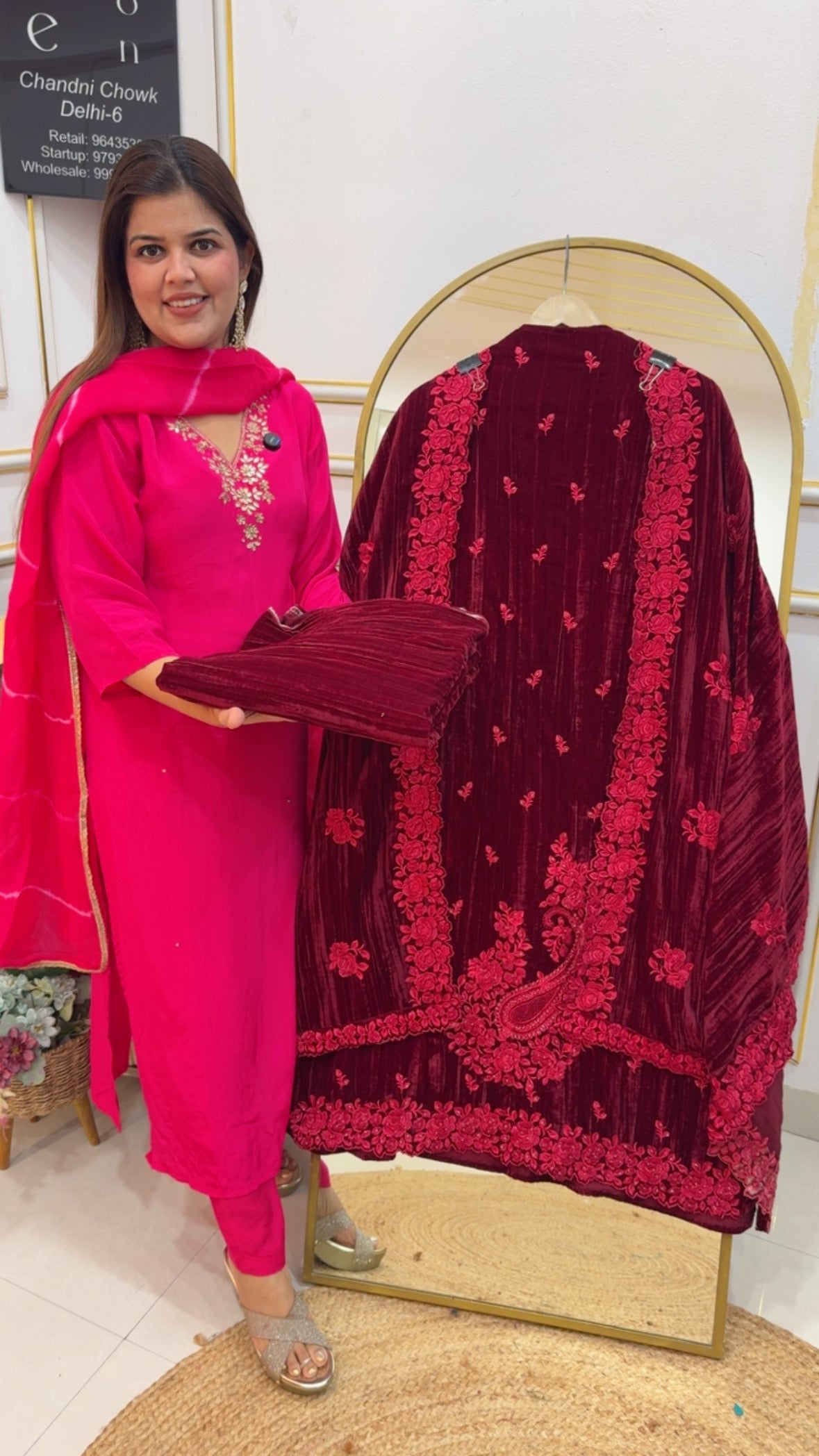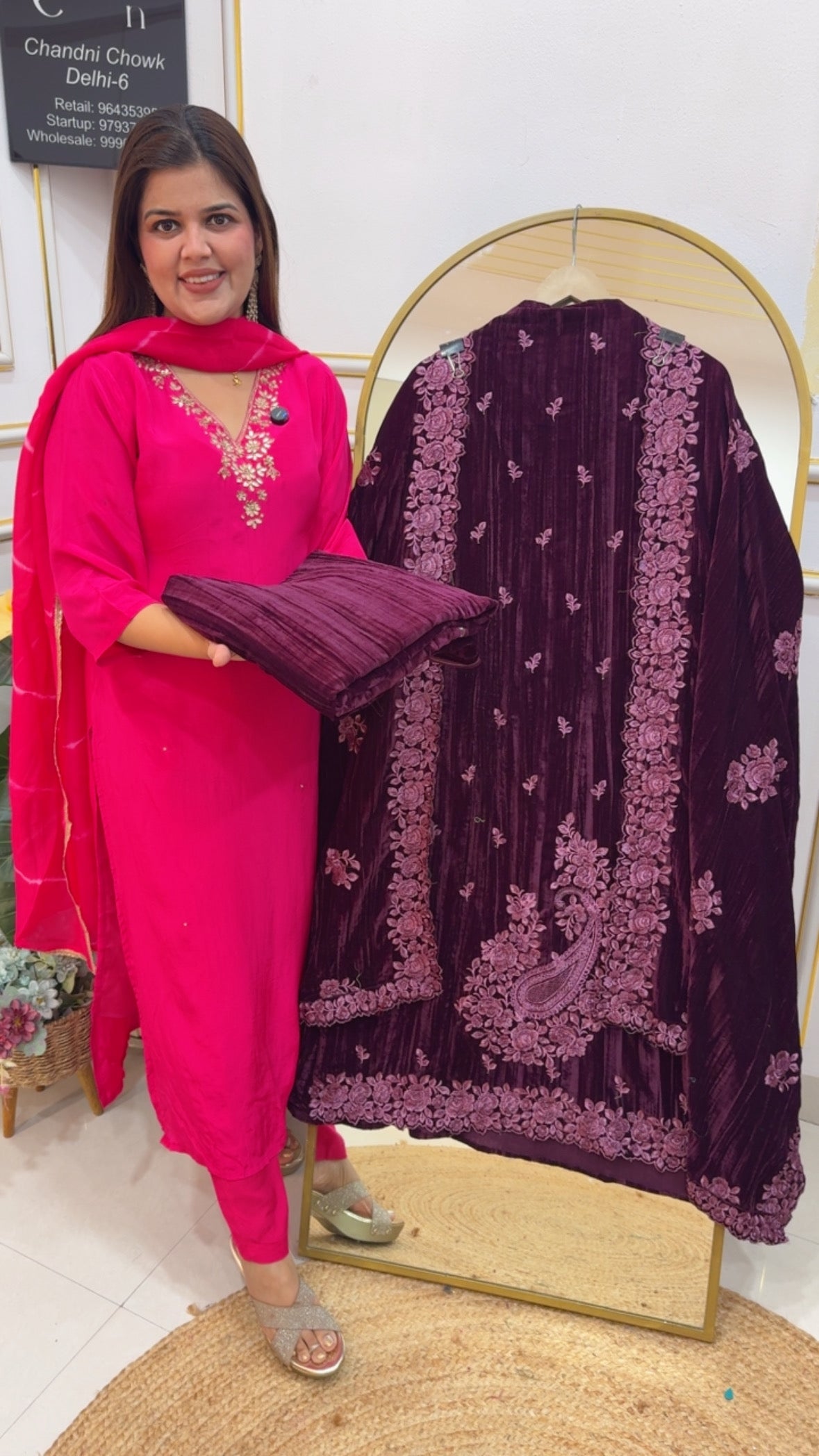 Premium partywear crushed velvet with all over applique embroidered ce – The Grace Fashion index