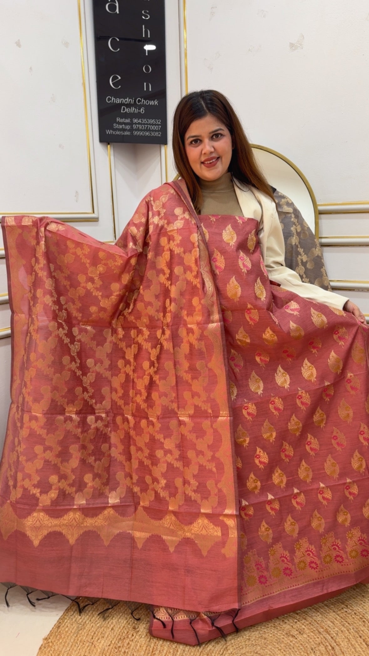 Indulge in refined elegance with this premium raw Tussar paper silk fully weaved suit material, crafted with rich weaving for a classy and graceful look. Paired with a full-weaved pure silk dupatta, this ensemble reflects timeless beauty and sophistication.