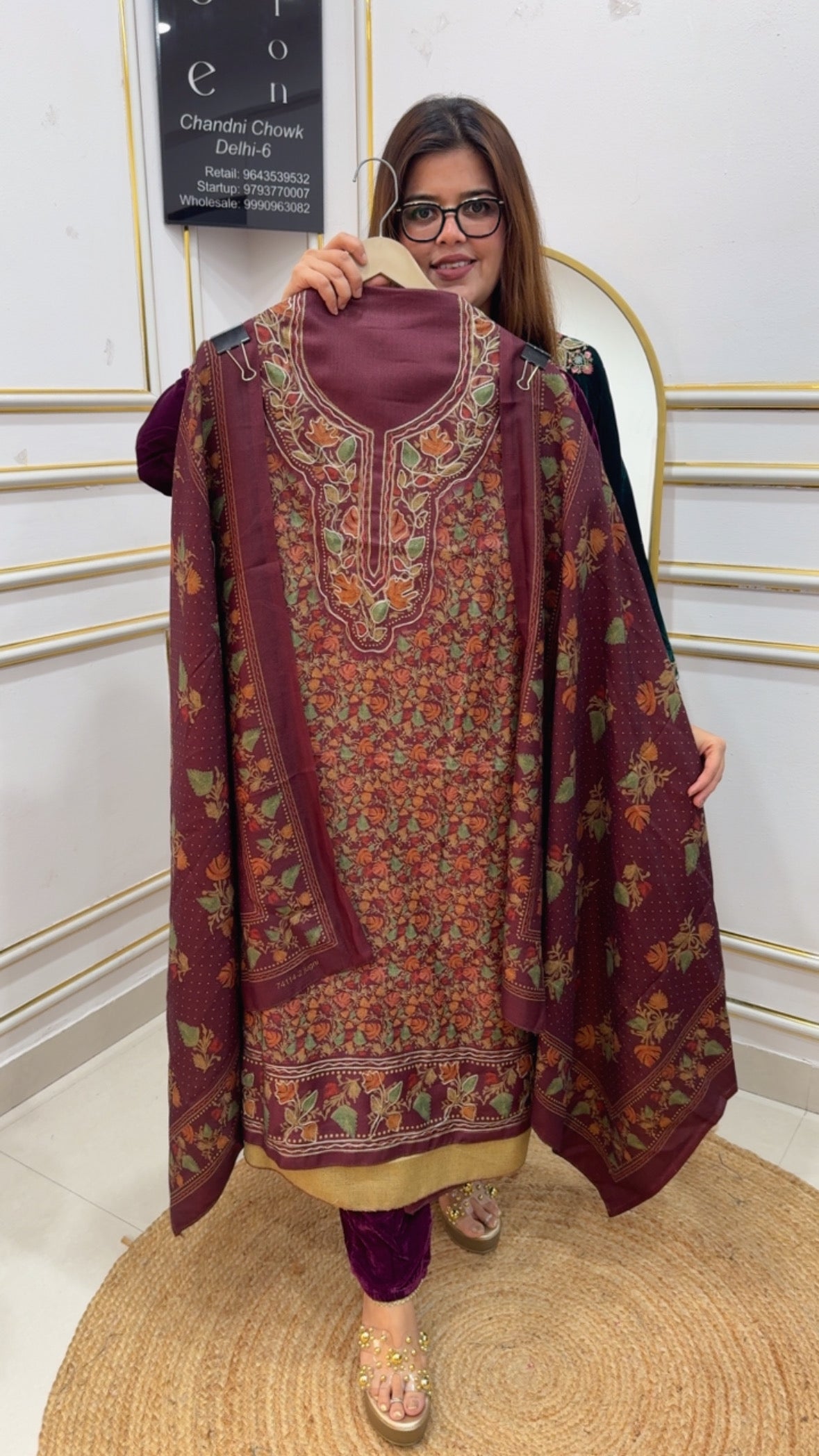 Huge demanded warm Kashmiri embroidery pashmina suit material along wi – The Grace Fashion index